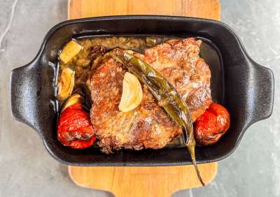 Cheeseburger Black Angus cu bacon crocant cartofi dippers și salatăcartofi dippers și salată