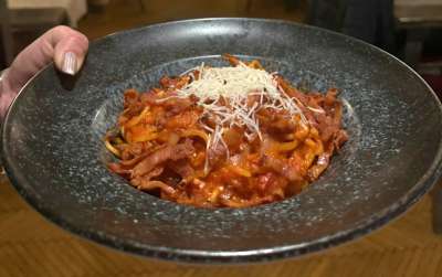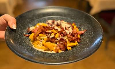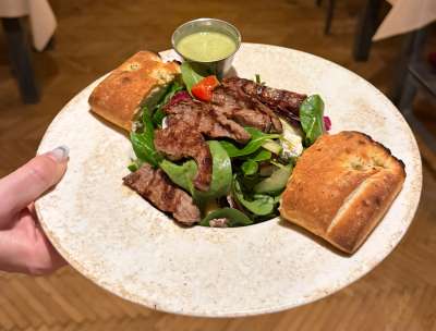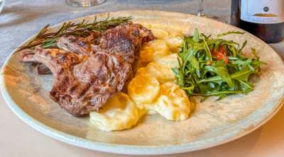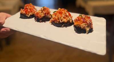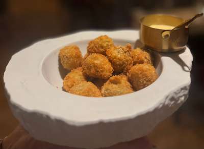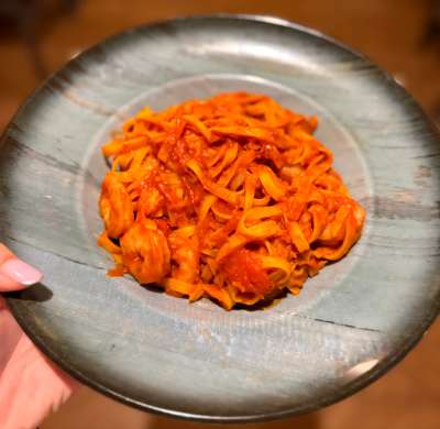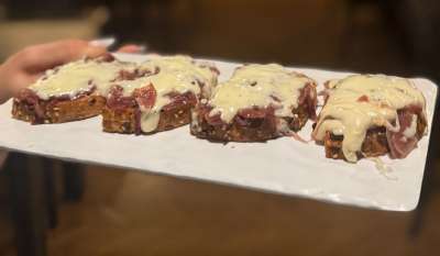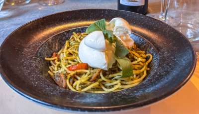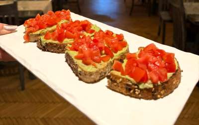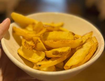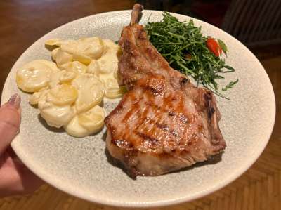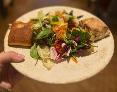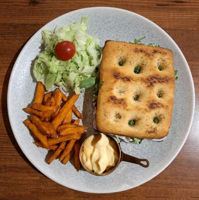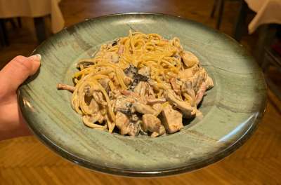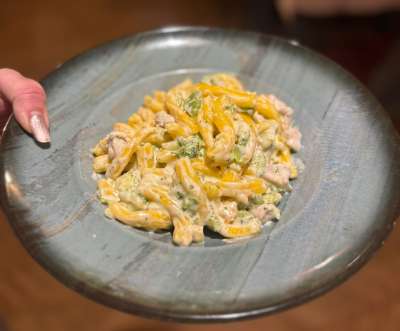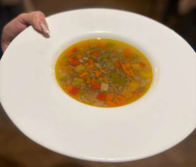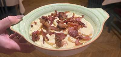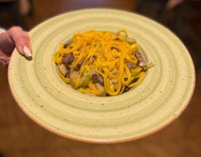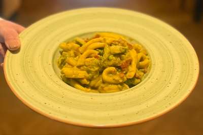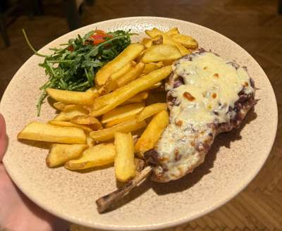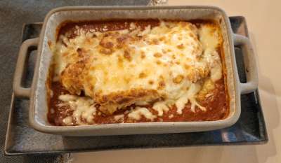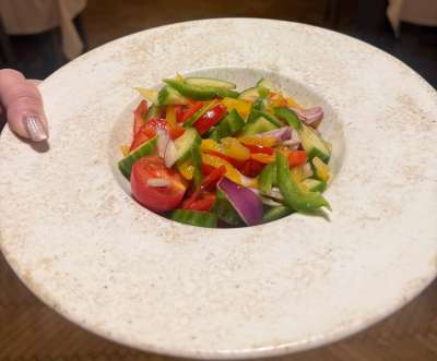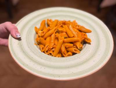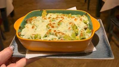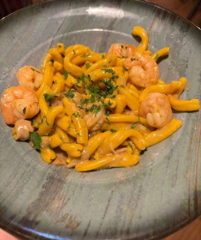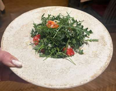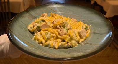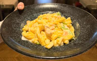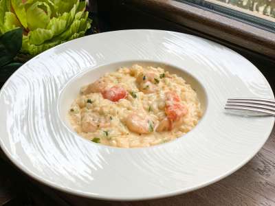 Alergeni: gluten, lactoză, soia / Ingrediente: piept pui (220g), făină (40g), ulei extravirgin de măsline (20g), produs de gătit pe bază de grăsimi vegetale (apă, grăsimi vegetale nehidrogenate din palmier 23%, zer praf, amidon modificat din porumb (E1442), maltodextrină, emulsifiant: lecitină de soia (E322), stabilizator: E412, E410, corector de aciditate: E339, colorant: E160a. Poate conține urme de arahide) (200g), parmezan (lapte, sare, cheag vegetal) (100g), orez (100g), avocado (100g), ulei extravirgin de măsline (10g), unt (10g) / Informații nutriționale / 100g: Valoare energetică: 850,13kJ / 203,02kcal, glucide: 15,48g, proteine: 12,35g, grăsimi: 9,67g, din care acizi grași saturați: 5,40g, fibre: 0,87g, zaharuri: 0,13g, sare: 2,97g. | 68 LEI 300 / 200 g |