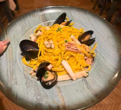 Alergeni: gluten, lactoză, soia / Ingrediente: piept pui (220g), făină (40g), ulei extravirgin de măsline (20g), produs de gătit pe bază de grăsimi vegetale (apă, grăsimi vegetale nehidrogenate din palmier 23%, zer praf, amidon modificat din porumb (E1442), maltodextrină, emulsifiant: lecitină de soia (E322), stabilizator: E412, E410, corector de aciditate: E339, colorant: E160a. Poate conține urme de arahide) (200g), parmezan (lapte, sare, cheag vegetal) (100g), orez (100g), avocado (100g), ulei extravirgin de măsline (10g), / Informații nutriționale / 100g: Valoare energetică: 850,13kJ / 203,02kcal, glucide: 15,48g, proteine: 12,35g, grăsimi: 9,67g, din care acizi grași saturați: 5,40g, fibre: 0,87g, zaharuri: 0,13g, sare: 2,97g. | 68 LEI 300 / 200 g |